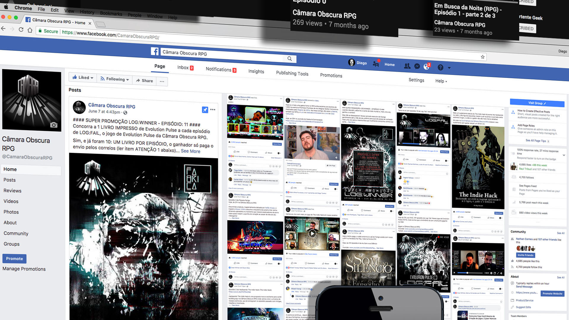 Comunicação, gestão de marca e gestão de redes sociais do canal de jogos presenciais Câmara Obscura RPG.