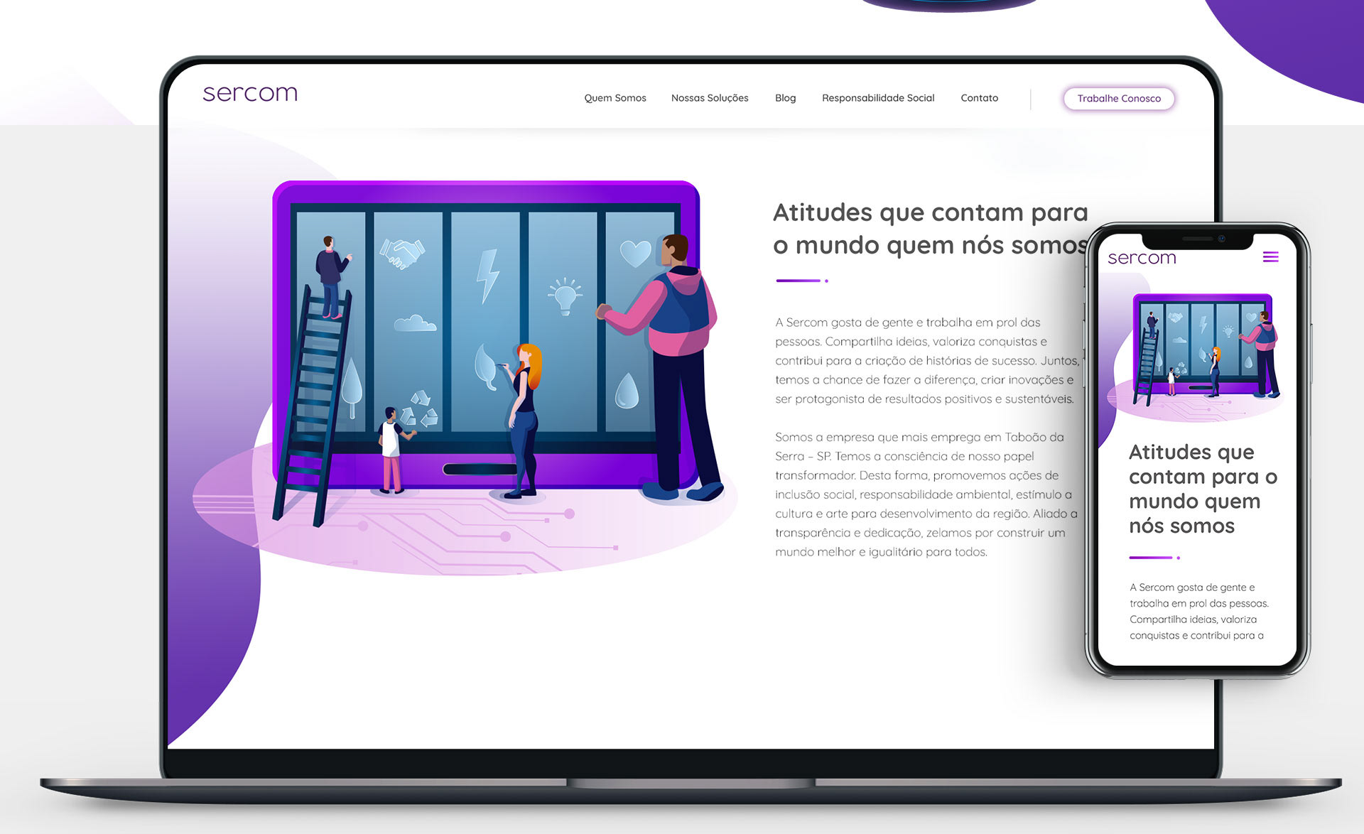 O Site institucional foi criado para apresentar os serviços oferecidos pela empresa, seus valores, e refletir o novo posicionamento de marca e imagem pelo qual a Sercom passou no último semestre.