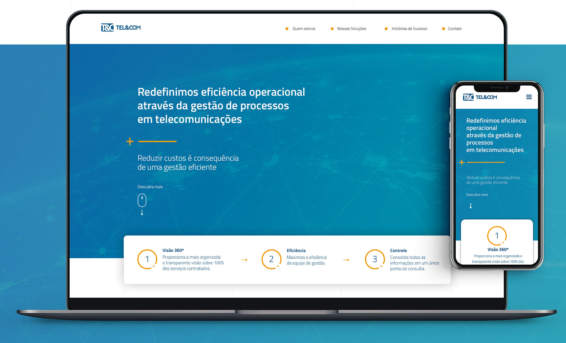 Continuando o trabalho de Rebranding que a Buffalo desenvolveu para a Tel&Com, o site da empresa também passou por uma reformulação completa para, de forma objetiva, apresentar a empresa, os produtos e serviços por ela oferecidos.