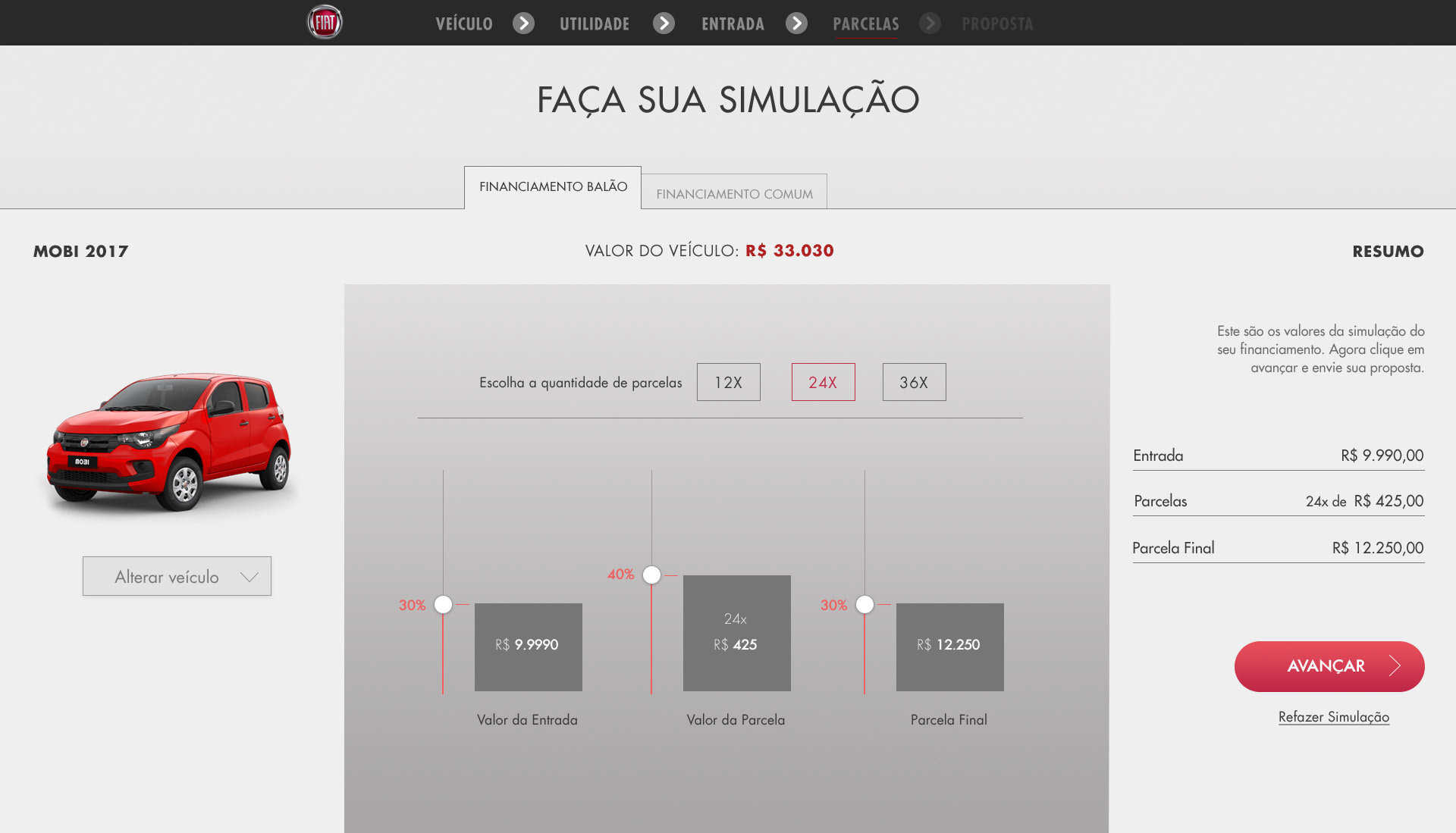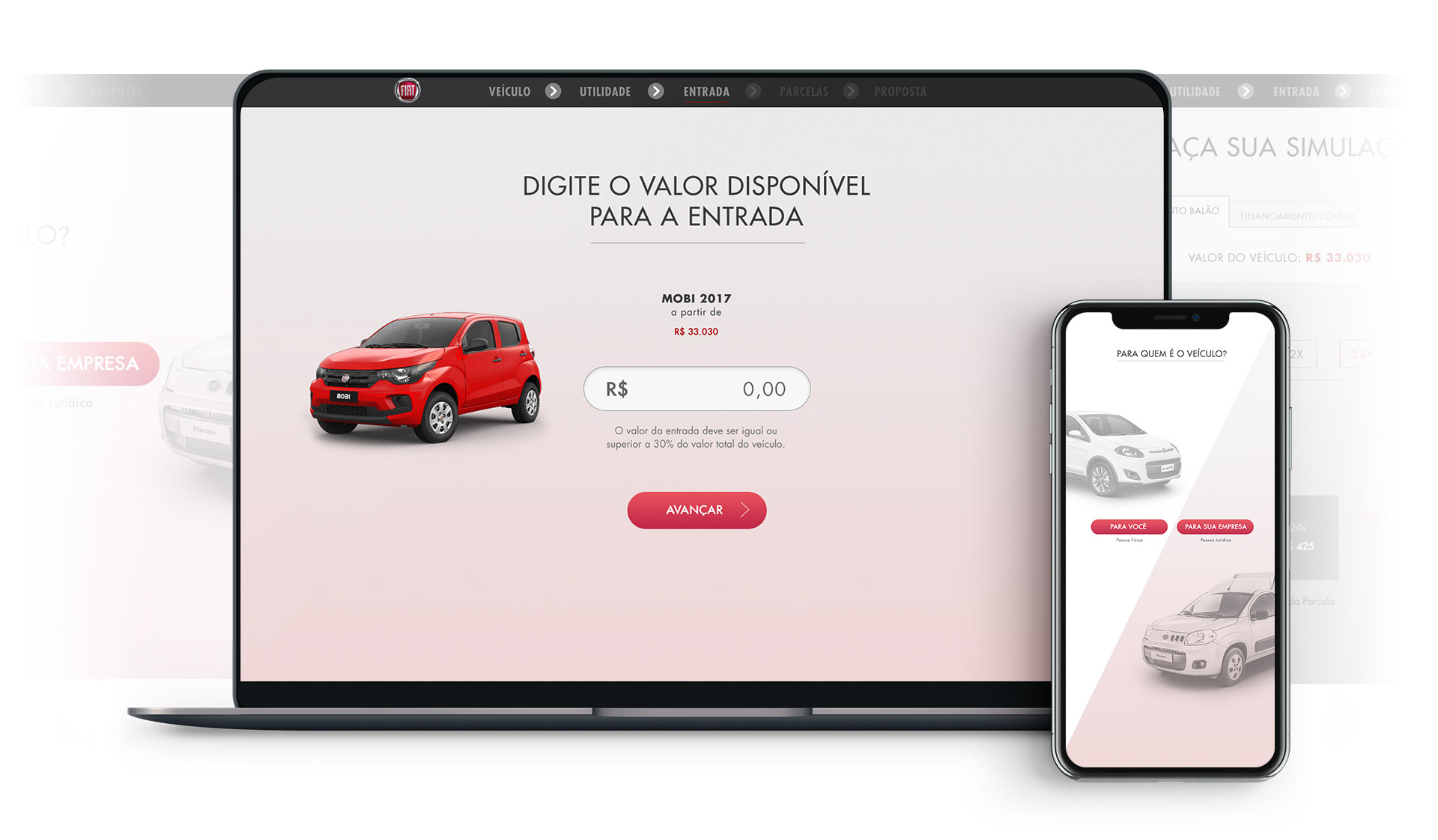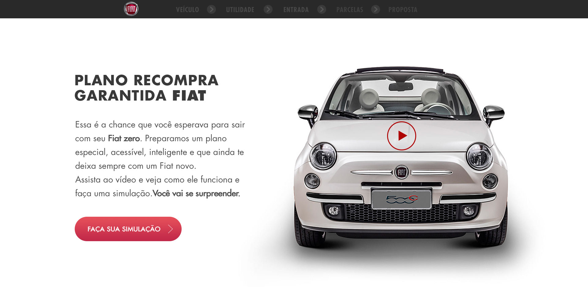 Landing Page para promover o Plano Recompra Garantida da Fiat. Com vídeo explicativo do programa a página contava também com simulação de financiamento interativa gerando lead diretamente para a concessionária de interesse do usuário.